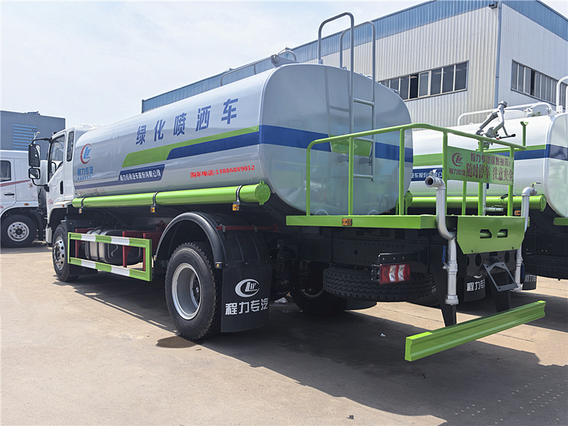 | 上裝配置:罐體采用Q235碳鋼,罐體厚度4mm,前后封頭5MM加厚型,罐體實際容積12噸(12立方),產品質量成熟可靠,結構設計合理,灑水泵壓力大、吸程遠、使用壽命長,可泵進泵出。前沖、后灑、側噴,消防栓接口,帶后工作平臺及綠化高炮(可全方位旋轉,可連續調成直沖狀、大雨、小雨、毛毛雨),水位計,兩根等長輸水管,其余標配。 |