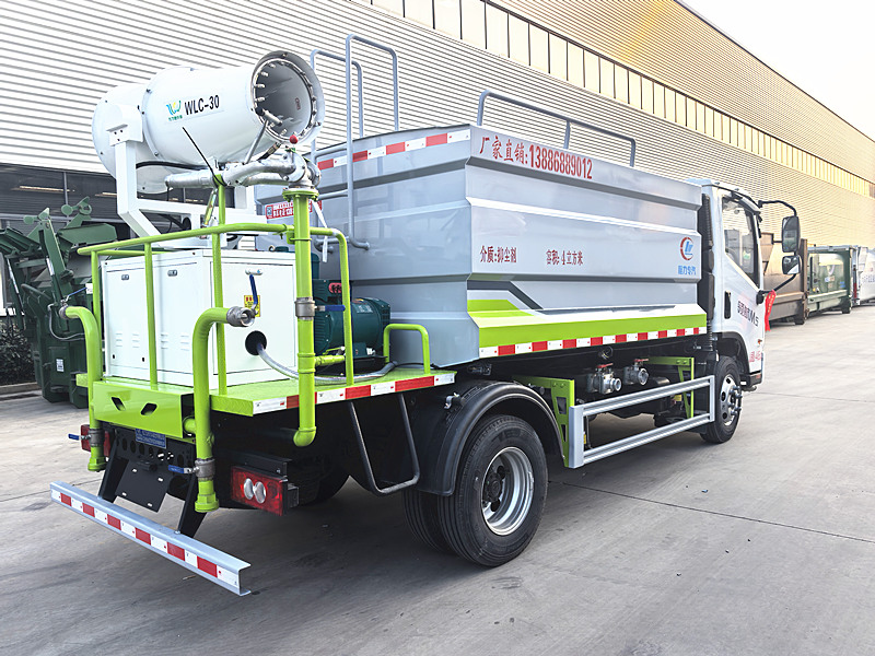 | 上裝配置:罐體采用國標Q235碳鋼,罐體采用機器壓板一次性成型技術,采用先進旋邊機,方形罐體工藝保證了罐體制作的精度和美觀。罐體實際容積5-7立方,全國獨有烤漆工藝,防腐除銹,多層底漆、面漆噴涂。 功能齊全,配備前沖、后灑、側噴、綠化高炮,采用優質水泵,合理設計水路管道,氣控取力器,作業能力強;采用柴油發電機大功率霧炮機,噴灑距離最高可達30米,運用范圍廣。 |