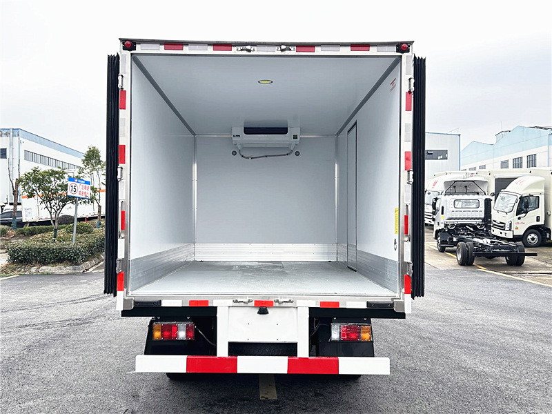 | 廂體配置:采用我公司液壓吸附一體成型生產(chǎn)線制造,保溫性能達(dá)到國(guó)家 A 級(jí)標(biāo)準(zhǔn)。廂體內(nèi)外面料采用新款納米玻璃鋼(不吸光、隔熱性好、硬度強(qiáng)、抗氧化),廂體厚度為 8cm。內(nèi)襯骨架為防銹處理武鋼輕鋼型材,保溫材料為無(wú)空隙填充聚氨酯發(fā)泡。廂體底部為鋁合金花紋板或可選平面納米玻璃鋼,廂體采用鍍鋅不銹鋼包角,加厚型鋁合金包邊,后門(mén)框?yàn)椴讳P鋼,加厚型不銹鋼后門(mén)合頁(yè)及鎖件,廂體內(nèi)部采用 LED 照明燈及廂體示寬燈。 選裝冷機(jī):可根據(jù)客戶(hù)的用車(chē)需求選擇不同機(jī)組,可選 - 5℃、-10℃、-15℃、-18 至 - 20℃冷藏機(jī)組。冷藏機(jī)組品牌有信凱利、冰利、韓亞、開(kāi)冷、漢雪、華泰、凱雪、易德、凱利等,進(jìn)口冷藏機(jī)組品牌有開(kāi)利、冷王。冷藏機(jī)組分為獨(dú)立機(jī)組和分體機(jī)組,可根據(jù)用車(chē)需求推薦合適的冷藏機(jī)組。該車(chē)型可選裝 “制冷 + 加熱” 雙溫機(jī)組(控制溫度范圍為 + 20℃至 - 18℃),適用于東北地區(qū)及內(nèi)蒙、新疆、西藏等嚴(yán)寒地區(qū)。 選裝配置:導(dǎo)軌肉鉤、T 型通風(fēng)槽、右側(cè)開(kāi)側(cè)門(mén)、溫度實(shí)時(shí)監(jiān)控帶打印裝置。運(yùn)輸海鮮時(shí)廂體內(nèi)部面料建議選用不銹鋼材質(zhì),可選裝 12V-24V 外接電源(車(chē)輛停止時(shí),廂體可通過(guò)外接電源制冷)。